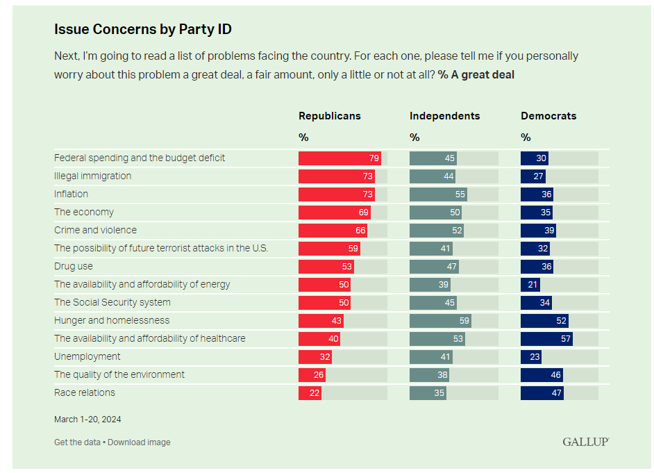Immigration isn’t the only issue where Biden could be leading, there’s a whole slew of things that we know swing voters and/or republicans care about. Pollsters check on these things regularly. But Joe “Fund the Police” Biden seems to have forgotten how to run a general election campaign and is trying to shore up his base instead of running to the middle. He could be out there talking about how dumb the fed is and how he wishes rates were lower as presidents before him have done, he could be out there touting his many legislative accomplishments, he could be talking about the Americans still held by Hamas. He could be doing any number of things, but instead he’s courting the people who are already going to vote for him by talking about Trump’s character.